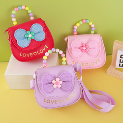 Cô gái mới thời trang PU trẻ em của đồng xu Ví Dễ Thương Hoa nhỏ cung ngọc trai túi xách giản dị Chéo Vai Túi bán buôn