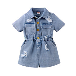 Avrupa amerikan yaz yeni kızların rahat katı ceketinizin yırtık bel Denim tulumlar küçük orta ölçekli çocuk popüler Suits